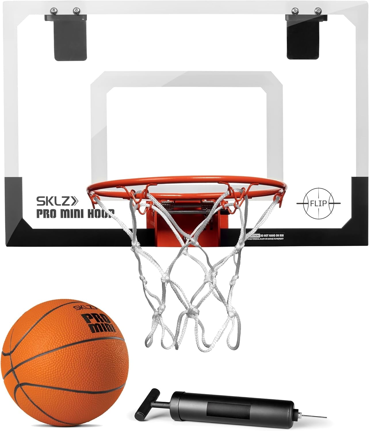 Includes rubber 5” Pro Mini Hoop basketball and ball pump