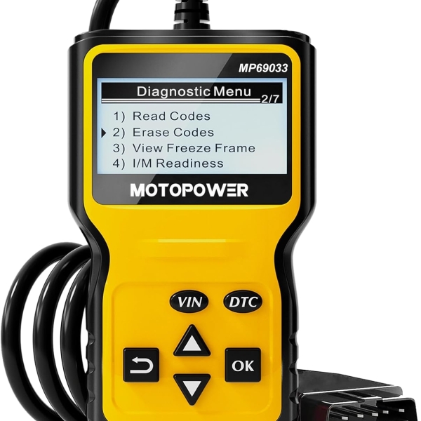 Multi-Functions – It’s a practical multi-function OBD2 code reader which helps you determine the cause of the check engine light coming on, quickly read and remove diagnostic trouble codes, read live data & hard memory data, view freeze frame, I/M monitor readiness and collect vehicle information. Instead of taking car to mechanic shop, you can use it to check the trouble code and show code definition by yourself. Wide Compatibility – Supports 9 protocols compatible with most 1996 US-Based, 2000 EU-Based and Asian cars, light trucks, SUVs, as well as newer OBD2 and CAN vehicles both domestic and foreign. Check compatibility with your vehicle model before purchasing. It can also be used for some motorcycle OBD2 system diagnosis. (Note: an additional specific adapter cable is needed. not included with this device) 2.8″ LCD Display & Multi-language – Designed with a clear 2.8″ LCD screen (128 x 64 pixels) – white backlight and contrast adjustment. No need any battery or charger, OBD reader gets the power directly from your vehicle through the OBDII Data Link Connector. It also supports 6 languages – English,German, Dutch, Spanish, French and Italian. This scanner is enjoyed and highly recommended by the customers worldwide. Compact Design & Easy to Use – It weighs about 12 ounces and measures 6 x 2.75 x 0.9 inches. Equiped with a 2.5 feet long heavy duty cable and the standard 16-PIN OBD connector. 6 buttons for quick operation. The plug and play design makes it user-friendly. Even if you don’t have much technical knowledge, you can operate it without any hassle. “Accurate & Fast – Different with other similar scanners, the MP69033 scanner use the brand new ARM micro processor to make sure the ultra high accuracy and fast speed. With the excellent performance of the micro processor, the detailed real-time engine data can be detected and displayed on the screen in seconds. Get codes, fix the problem and turn off the CEL. If you just need a code reader to check your car, it’s definitely an affordable and reliable tool.